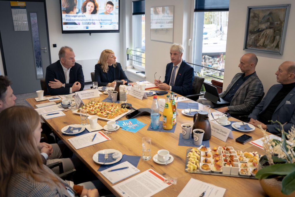 Zur gemeinsamen „Bilanz am Ausbildungsmarkt“ durften wir Markus Biercher (Regionaldirektion Nord der Bundesagentur für Arbeit), Jens-Uwe Hopf (HWK) und Torsten Haasch (IHK) bei uns in Rostock begrüßen. Die Zahlen zeigen: Der Markt ist für Bewerber gut, doch viele Stellen bleiben unbesetzt.